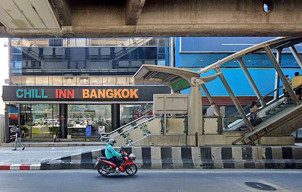 Chill Inn Bangkok門口就是曼谷捷運Ekkamai站向上手扶梯,若想搭電梯要往前走到3號出口。