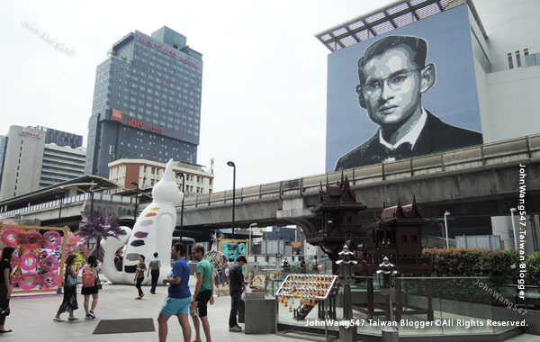 MBK現在和Bangkok Art And Culture Centre曼谷藝術文化中心之間有大片天橋相連,站在MBK門口可以看到BACC外牆上的泰皇彩繪。