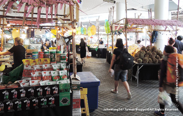 除了泰國服飾、皮件飾品、手作品外,也有飲料攤、麵攤、炸物,還有榴槤攤呢!