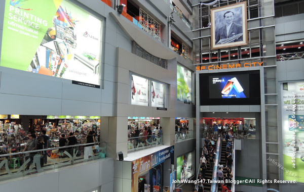 1985年MBK Center開幕時曾是亞洲最大商場,擁有七層百貨空間,超過2500個店鋪,包含平價成衣、鞋子包包、化妝保養品、皮件、金飾珠寶、3C、家具、速食店、餐廳、超市、電影院。每天湧入數萬名遊客,吃喝玩樂待上一整天不是問題。跟Siam站的百貨群相比,MBK比較像是大賣場的格局。